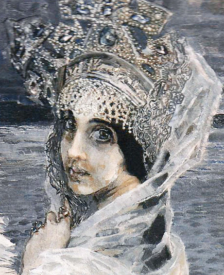 Её облику Пушкин передал некоторые черты чудесного мальчика из записанной им сказки («месяц под косой блестит, а во лбу звезда горит») либо героини из сказки баронессы д’Онуа. Кроме того, он сделал её сестрой 33 морских богатырей, которые в записи сказки являются братьями героя (см. ниже). Связь с морской стихией прослеживается и в том, что в русских народных сказках Василиса Премудрая — дочь морского царя[16].