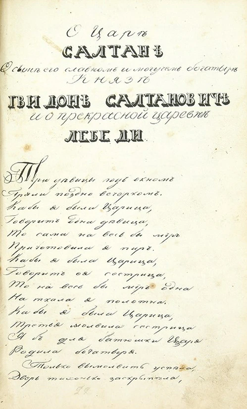 Любопытно замечание в конце 1-го издания: «Поправка. В Сказке о царе Салтане и проч. вместо слова Окиян ошибочно везде напечатано Океан» (то есть при печати ошибочно была ликвидирована сказочность этого окияна)[15].