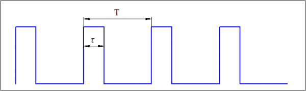 где — скважность, — период импульсов, — длительность импульса, — коэффициент заполнения.