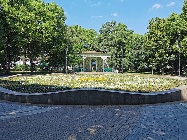 Современный сквер разбит в 1948 году архитектором М. П. Коржевым в соавторстве с Б. В. Белозерским и С. В. Чаплиной. В сквере установлены три памятника: Л. Н. Толстому (скульптор А. М. Портянко, архитекторы В. П. Соколов, В. В. Богданов), Н. Ф. Филатову, одному из основоположников педиатрии в России. На гранитном пьедестале надпись: «Другу детей Нилу Федоровичу Филатову». Этот памятник был поставлен в 1960 году по проекту скульптора В. Е. Цигаля. В 2014 году к этим памятникам был прибавлен ещё один - «Памятник лётчикам Дальней авиации», он создан скульптором Салаватом Щербаковым и архитектором Игорем Воскресенским. В сквере располагается фонтан, который выполняет функции вентиляционного киоска подземных коммуникаций Академии им. Фрунзе.
