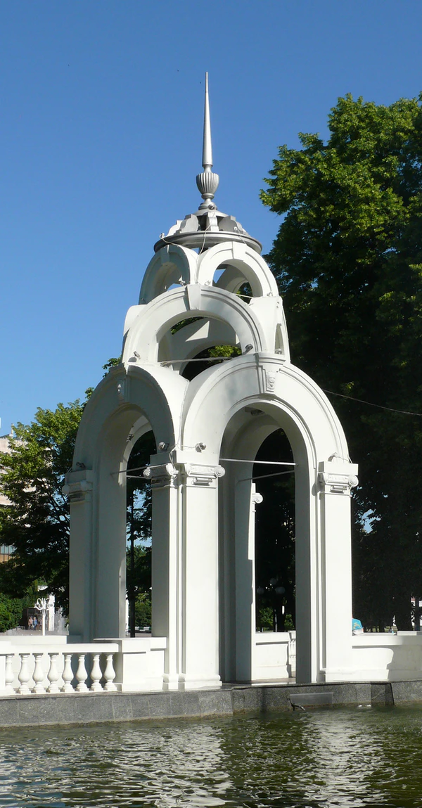 В 1947 году в сквере была сооружена фонтан-беседка Стеклянная (Зеркальная) струя, ставшая одним из символов города[2]. В 2004 году к празднованию 350-летия Харькова в подарок от города Алчевска был получен памятник Алексею Кирилловичу Алчевскому, который установили в северо-восточной части сквера возле перекрёстка улиц Чернышевской и Совнаркомовской.