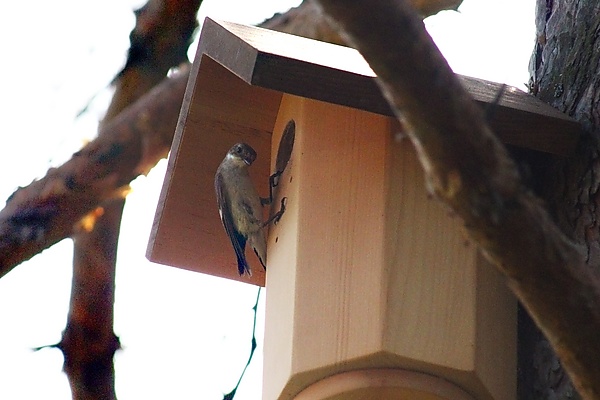 Для некоторых птиц (например, для трясогузок), отличающихся тем, что они не обладают цепкостью лап и предпочитают ходить «пешком», возможна модификация домика, который лежит «на боку» и в котором имеется «трапик» перед входом шириной около 10 см. Размещается обычно под крышей дома или сарая на высоте 3—5 м[6].