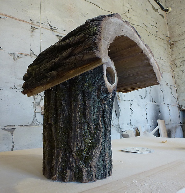 Вариантом скворечника или синичника является также дупля́нка — гнездовье в виде куска древесного ствола с выбранной серединой, закрытого сверху и снизу с летком для птиц в стенке[7].