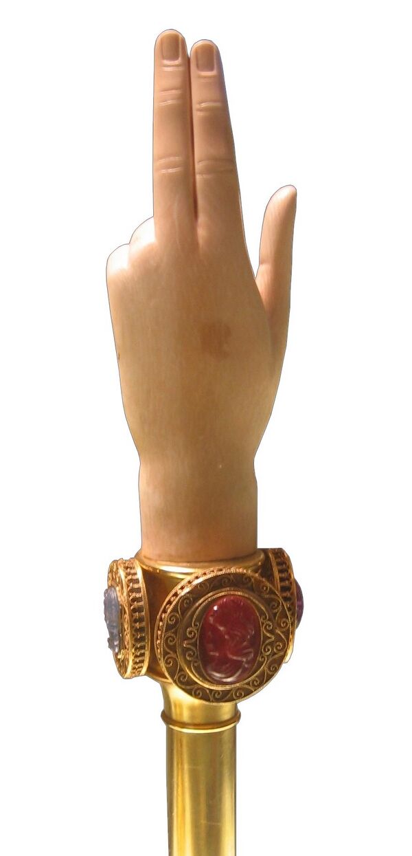 - Скипетр Большого наряда (Михаила Фёдоровича). «Есть основания предположить, что скипетр и держава входили в состав даров, привезенных в 1604 году царю Борису Годунову Великим посольством Рудольфа II, императора Священной Римской империи»[2]. Держава и скипетр, уцелевшие в Смутное время, были, очевидно, использованы в 1613 году в обряде венчания на царство Михаила Федоровича[3].
