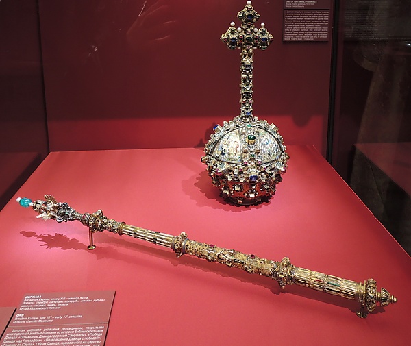 Это самый древний сохранившийся русский скипетр. Он является парным к державе, вместе с которой входил в парадное царское одеяние — «Большого», или Первого Наряда.