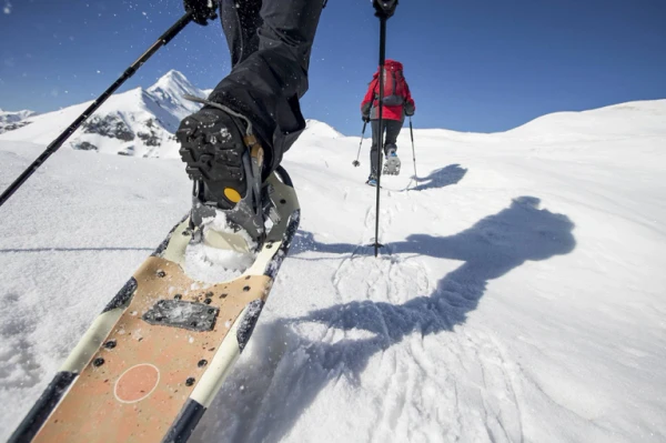 - лёгкие лыжи с креплениями, позволяющими освобождать пятку при ходьбе и фиксировать её при спуске[6];