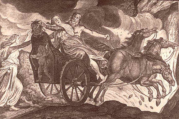 Менее совершенным получилось изображение квадриги, которую гонит парень-возничий. В колеснице — бог подземного царства Плутон, что похитил Кору, дочь богини земли Деметры. Каждый из коней квадриги — разного цвета. Изображения Плутона и Коры плохо сохранились из-за осыпания краски и штукатурки. Из-за нарушения пропорций тела Плутона и немасштабности фигур были сделаны вывод о том, что автор фресок — местный мастер.