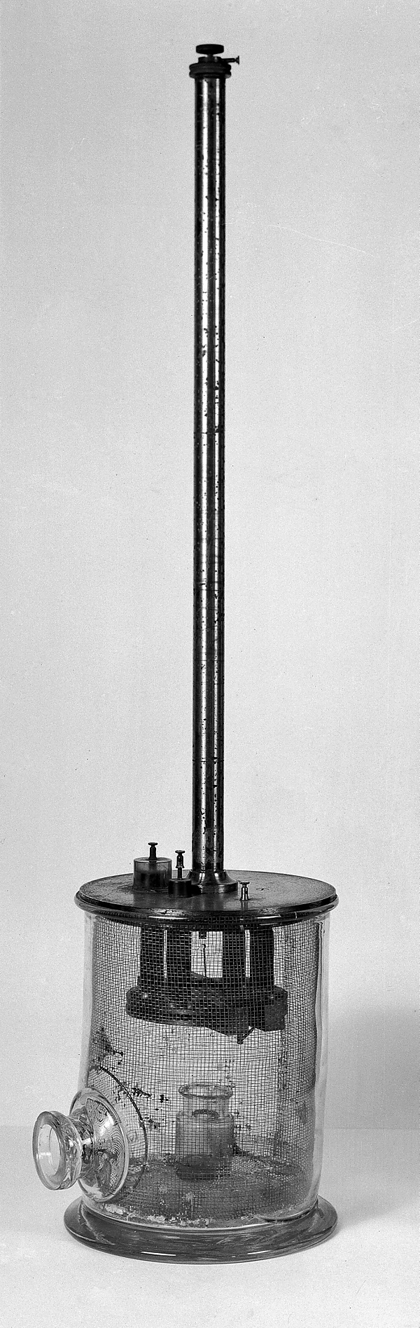 Для количественного определения эффекта ионизации Мария с помощью Пьера придумала и сконструировала прибор, состоящий из пьезоэлектрических весов, разработанных Пьером и его братом Жаком[4][37][173], квадрантного электрометра и ионизационной камеры, подсоединённой к батарее. Радиоактивное вещество помещалось в ионизационную камеру, где испускаемые им лучи ионизировали воздух. Ионы, перемещаясь к полюсам батареи, генерировали ток, что приводило к отклонению стрелки электрометра. Затем заряд электрометра компенсировался равным по величине зарядом, который давал кварцевый пьезоэлемент при деформации под весом гирек на весах[174][159][10].