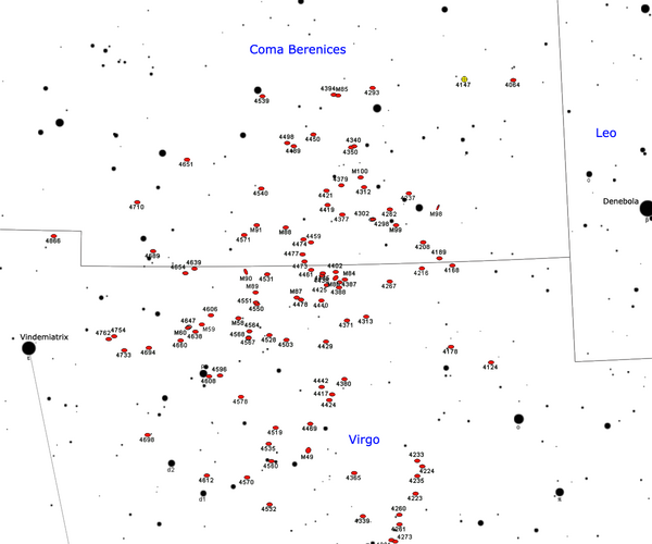 | NGC 4388 | 12 25.5 | 12 39 | 11.8 | SAb | 6.2′ | 85 | 2845 |
