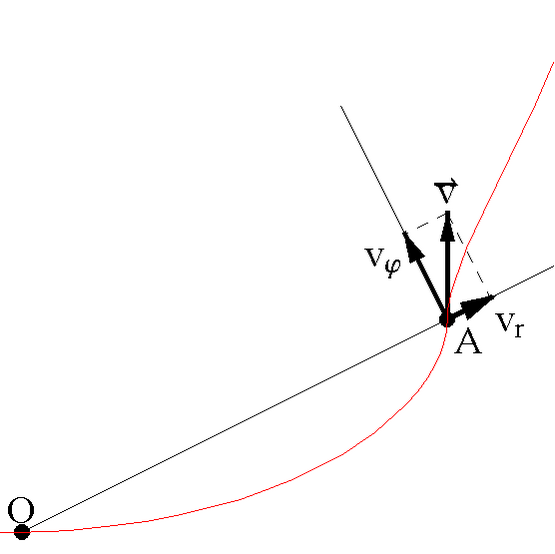где — единичный вектор касательной, проходящей через текущую точку траектории (он направлен в сторону возрастания дуговой координаты движущейся точки), а — проекция вектора скорости на направление упомянутого единичного вектора, равная производной дуговой координаты по времени и именуемая алгебраической скоростью точки. В соответствии с приведёнными формулами, вектор скорости точки всегда направлен вдоль касательной, а алгебраическая скорость точки может отличаться от модуля этого вектора лишь знаком[4]. При этом: