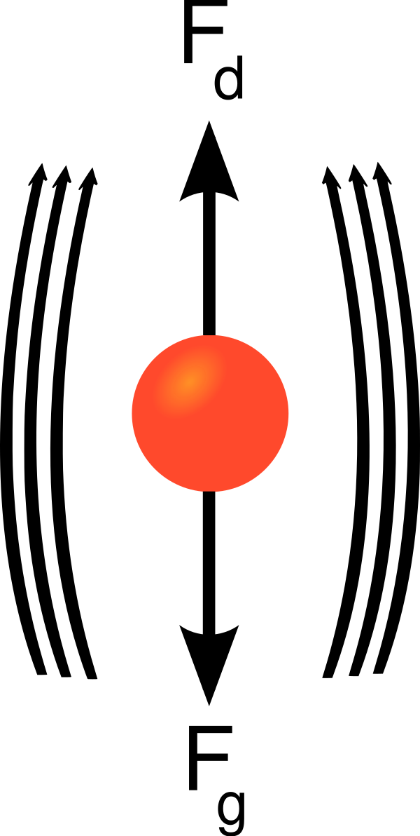 При свободном падении твёрдого тела в воздухе на него действуют две силы: сила тяжести равная mg, где m — масса тела и g — ускорение свободного падения, и лобовое сопротивление, то есть сопротивление среды. Сила сопротивления пропорциональна площади поперечного сечения тела A, квадрату скорости v2 и плотности воздуха ρ.