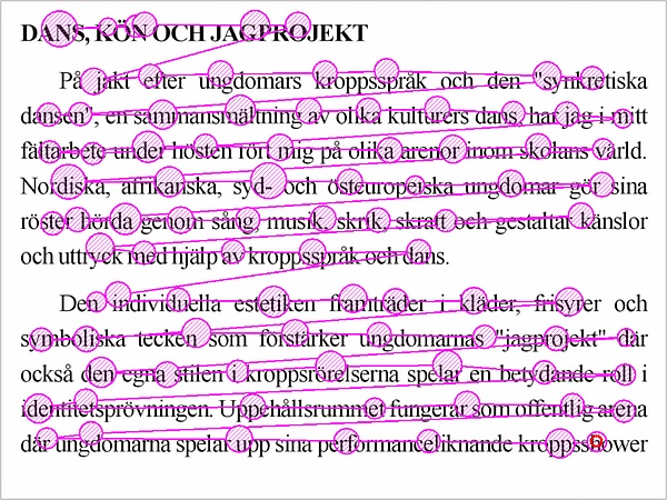 Расширение поля зрительного восприятия. Существуют специальные упражнения (например, с таблицами Шульте), направленные на улучшение периферического зрительного восприятия. Благодаря этому навыку за одну остановку взгляда тренированный читатель может охватить большее количество слов, вплоть до целой строки. Чем меньше переводов взгляда по строке делает читатель, тем выше скорость чтения и меньше утомляемость. При тренировке быстроты чтения необходимо учиться воспринимать строку текста за всё меньшее и меньшее количество переводов взгляда. Вначале удобно учиться этому на газетах с узкими колонками текста.