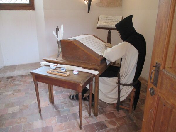 Скриптории не имели единого плана, часто это была комната возле кухни, где было сухо и тепло, что способствовало сохранности материалов; монахи работали над рукописями как в общих помещениях, так и в собственных кельях[6]. Определённое влияние оказывал также порядок в монастыре: картезианцы обычно писали в одиночестве, а бенедиктинцы — в больших залах[6].