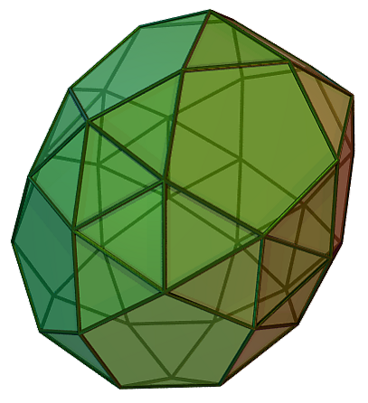 Составлена из 52 граней: 40 правильных треугольников и 12 правильных пятиугольников. Каждая пятиугольная грань окружена пятью треугольными; среди треугольных граней 10 окружены тремя пятиугольными, 10 — двумя пятиугольными и треугольной, 10 — пятиугольной и двумя треугольными, 10 — тремя треугольными.