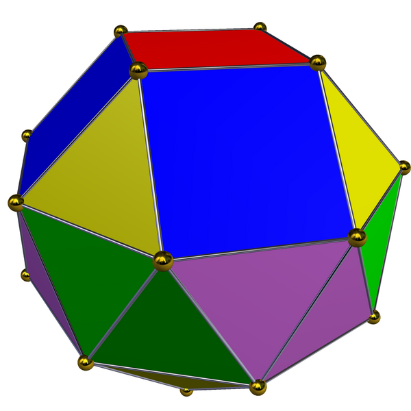 Составлен из 34 граней: 24 правильных треугольников и 10 квадратов. Среди квадратных граней 2 окружены четырьмя квадратными, остальные 8 — квадратной и тремя треугольными; среди треугольных граней 8 окружены двумя квадратными и треугольной, 8 — квадратной и двумя треугольными, 8 — тремя треугольными.