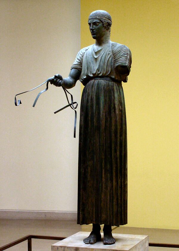 В начале V века до н. э. в греческой скульптуре одновременно с обобщением образа, его большей ясностью и дальнейшим развитием связи скульптуры с архитектурой возникает особый интерес к максимально правдивой передаче движения. Стремление прямолинейно передать натуру даже порождает угловатость форм, разрушающую гармонию статуй конца архаики. Лишь со временем искусство классики придёт к новой гармонии и цельности.
