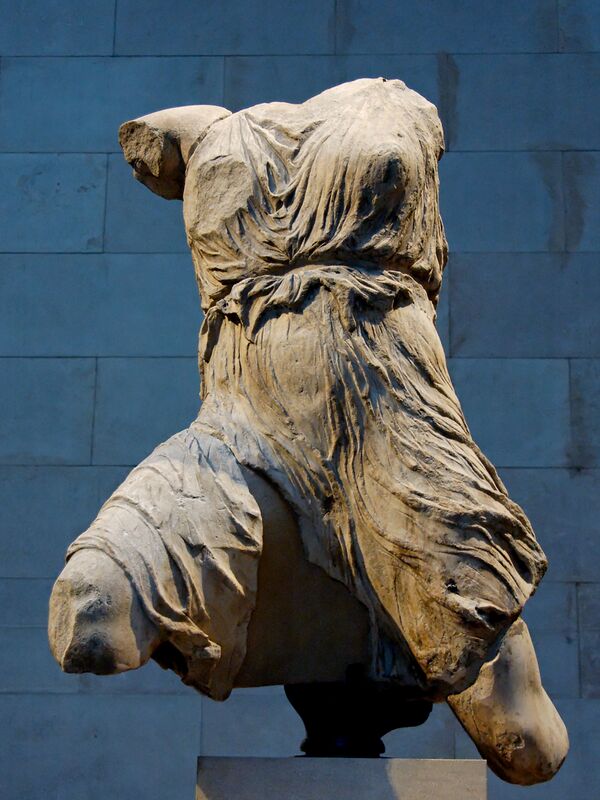 В Парфеноне синтез скульптуры и архитектуры достиг своего высшего развития в древнегреческом искусстве. Если в западном фронтоне ещё присутствует характерное для ранней классики движение вдоль плоскости стены, то в восточной композиции каждая фигура чувствует себя совершенно свободно. Зритель не замечает ограничивающих рамок архитектуры, создающей пространство для скульптур. Высочайшими качествами обладают сохранившиеся фигуры восточного фронтона — лежащий Кефал (или Дионис) и сидящие Мойры (или Афродита, Пейто и Диона). В них в совершенной цельности проявились монументальность и ясность, лишённые нарочитости, телесная красота, почти живое дыхание.