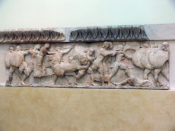 Иные новшества появились во фризе храма Аполлона в Бассах, построенного ок. 430 года Иктином. Хранящийся в настоящее время в Британском музее фриз был расположен внутри целлы храма. Здесь представлены амазономахия и кентавромахия. Его отличают необычные для высокой классики бурность движения, резкие светотеневые контрасты, откровенное изображение в лицах злобы и страдания. Тяжеловестность господствует над соразмерностью. Особенности фриза могут быть связаны с провинциальным, самобытным творчеством его исполнителя, но в них можно видеть и предвосхищение образов скульптора поздней классики Скопаса.