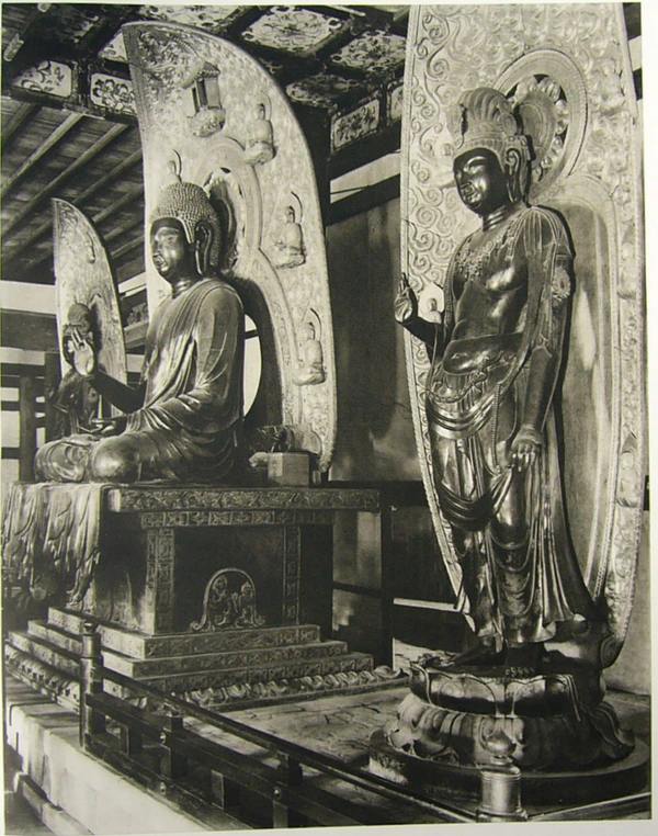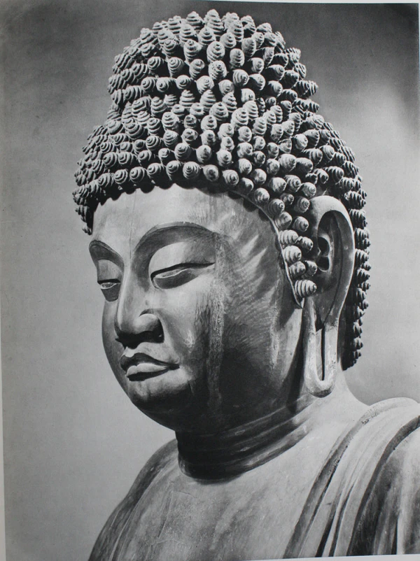 В период Асука в Японию приходит буддизм. Первый крупный скульптор Японии — Курацукури-но Тори — создал несколько шедевров буддийской металлической скульптуры в храмах Хорю-дзи и Асука-дэра. Постепенно фронтальные скульптуры в стиле Северной Вэй сменились трёхмерными, а затем — стилем Хакухо. Приказ императора Сёму об обязательной установке в буддийских монастырях скульптур 741 года был издан в период расцвета буддийской скульптуры, характеризующийся увеличенными размерами статуй. Примером скульптуры того периода является 16-метровая статуя Великого Будды из храма Тодай-дзи. В 753 году в Японию прибыл влиятельный китайский монах Гандзин со свитой, в которой было и двое скульпторов; для Гандзина построили храм Тосёдай-дзи. Вместе с ними в японскую скульптуру проникли новые веяния из китайского искусства[1].