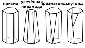 Скутоид — призматоид, к которому была добавлена одна дополнительная вершина среднего уровня. Эта дополнительная вершина заставляет некоторые грани результирующего объекта изгибаться. Это означает, что скутоиды не являются многогранниками, потому что не все их грани плоские … Для вычислительных биологов, которые создали/открыли скутоид, ключевым свойством формы является то, что она может комбинировать себя и другие геометрические объекты, такие как усеченные конусы, для создания трехмерных упаковок эпителиальных клеток.