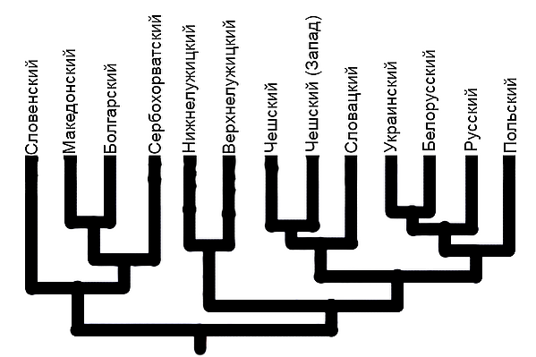 белорусский, | белорусский | русский | кашубский | чешский | словацкий | словенский | македонский | болгарский | сербохорватский |