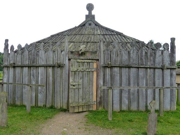 Самым изученным храмовым комплексом славян является деревянный храм в Радониме, в нынешней Германии. Храм представлял собой прямоугольное здание из вертикальных плах, которые были обшиты досками в форме антропоморфных фигур. Центральная часть здания была повреждена. В здании были найдены два копья, черепа зубра и шести коней[10].
