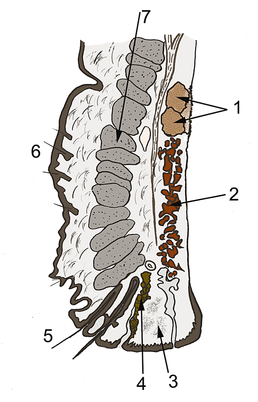 - Крипты Генле — располагаются в конъюнктиве век у дистального края хряща. Секретируют муцины.