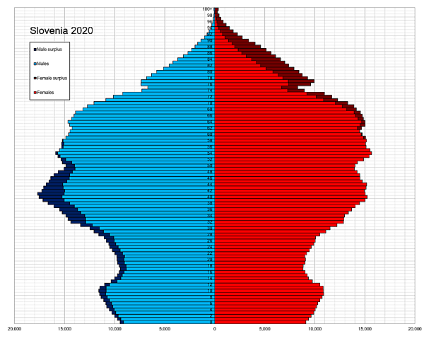 По состоянию на 1 января 2013, в Словении зарегистрирован 2 058 821 житель. Словения занимает 145 место в мире по численности населения. Средний возраст населения — 41,7 лет (мужчин — 40, женщин — 43).
