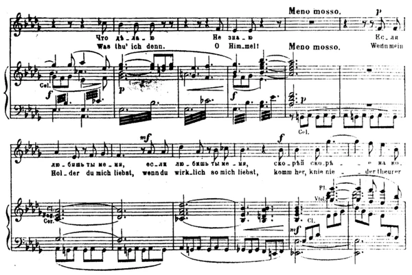 При записи вокальной партии в партитуре для музыкального инструмента и голоса каждый слог помещают под соответствующей ему нотой.