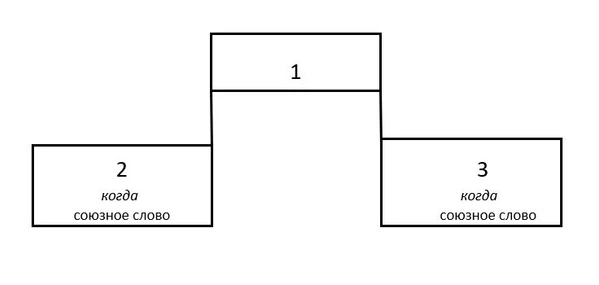 Пример 2. Я понял всё не в тот момент 1/, когда она пришла 2/, а в тот момент 1/, когда она разговаривала со мной по телефону 3/.