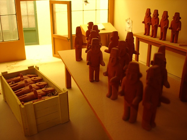 На обратном пути Перес и Рамон отбирают у Тинтина каноэ, сталкивая его в кишащую пираньями реку. Выбравшись на берег, Тинтин и Милу пешком добираются до столицы Нуэво-Рико, где их внимание привлекают выставленные в витринах копии заветного идола. Тинтин добирается до мастерской по их изготовлению, которой владеет брат покойного Бальтазара. Из разговора с ним выясняется, что статуэтка была прислана вместе с другими вещами брата из Европы. Однако идола у него уже нет: за несколько дней до встречи с Тинтином он был продан богатому американцу.