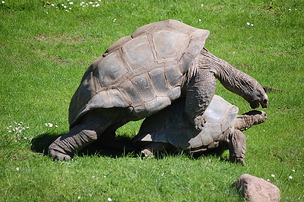 Спариваются слоновые черепахи в любое время года, но у них есть пики половой активности с февраля по июнь. Самцы могут быть агрессивны и драться из-за самки[5].