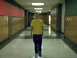 Затем показан отрывок, как на уроке физики одноклассники (один предположительно — Натан) бросаются жеванной бумагой в Алекса, который рисует вместо того, чтоб слушать, и тому приходится в туалете отмывать пятна со своей куртки. В столовой Алекс зарисовывает в блокнот план помещения. Данный эпизод демонстрирует события в школе за пару дней до стрельбы.