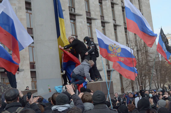 По мере радикализации выступлений и появления новых пророссийских лидеров, а также под влиянием крымских событий, мирные протесты на территории Донецкой и Луганской областей постепенно переросли в вооружённое противостояние, а лозунги федерализации Украины сменились здесь требованиями самостоятельности регионов и привели к провозглашению Донецкой и Луганской народных республик. Для подавления антиправительственных выступлений украинское руководство в середине апреля объявило о начале силовой операции, направило в Донбасс танки, артиллерию и боевые самолёты.
