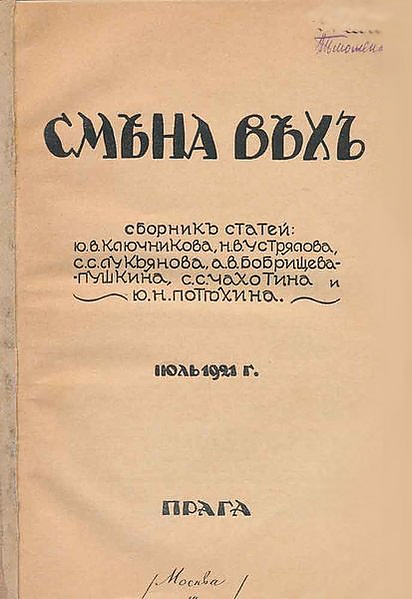 1-й этап — начался в 1920-е годы и продолжался до конца 1930-х, когда практически все прежние лидеры сменовеховства уехали в СССР, где были расстреляны НКВД (Николай Устрялов, Александр Бобрищев-Пушкин, Сергей Лукьянов, Юрий Ключников);