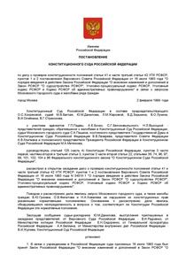 2 февраля 1999 года Конституционный суд РФ вынес Постановление № 3-П[48], в котором признал неконституционным возможность вынесения смертных приговоров в отсутствие судов присяжных во всех регионах страны. Данный запрет имел временный и исключительно технический характер и вопрос о смертной казни нельзя было назвать полностью решённым, поскольку она закреплена в Уголовном кодексе РФ в ст. 44 и ст. 59, а порядок её исполнения предусмотрен в главе 23 раздела VII Уголовно-исполнительного кодекса Российской Федерации и решение о принятии Федерального закона о ратификации Протокола N 6 либо его отклонении органами законодательной власти не рассматривается уже более 10 лет[49].