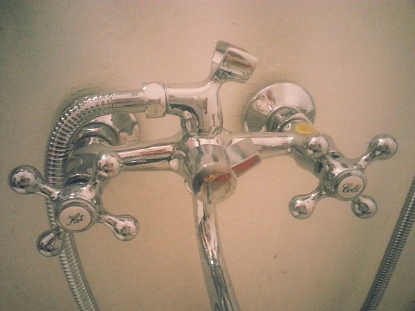 Смесители с раздельными кранами (двухрукояточные) имеют два независимых крана (клапана), каждый из которых управляется «своим» маховиком. Такая конструкция очень проста, недорога и относительно надёжна[3].