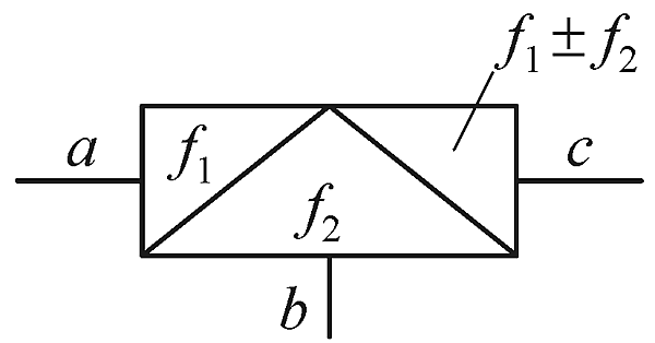 В идеальном перемножающем смесителе при подаче на его входы спектрально чистых синусоидальных сигналов постоянных амплитуд на выходе его формируется сигнал, являющийся суммой следующих синусоидальных сигналов: