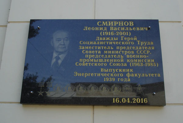 - Памятная доска Смирнову в 2016 году была установлена на здании Энергетического факультета НПИ.