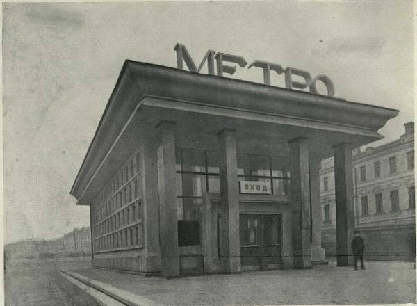 Для выхода из метро в 1935 году были возведены два павильона, но оба они не дошли до наших дней. Сейчас выход со станции осуществляется через один вестибюль. 1950 году старый павильон (по проекту С. Г. Андриевского) был снесён. Вместо него появился новый, встроенный в многоэтажный жилой дом (по проекту архитектора И. В. Жолтовского)[1].