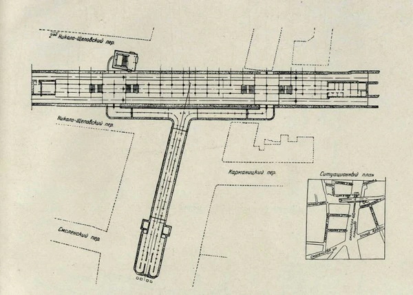 В 1937—1939 годах на месте бывшего входа на станцию «Смоленская» был построен первый в России подземный переход. При расширении магистрали павильон разобрали, а подходные галереи превратили в подземный переход через Садовое кольцо, не связанный с входом в метро[3].