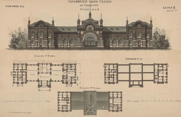 До революций 1917 года было два пассажирских вокзала: Орловско-Витебской (Риго-Орловской) и Московско-Брестской (Александровской) железных дорог, оба вокзальных здания стояли параллельно друг другу между железнодорожными путями и были соединены между собой аркой с часами.