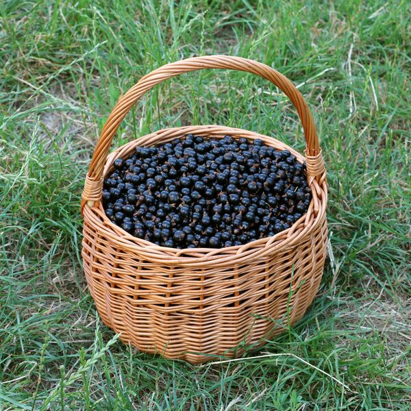 Плод — съедобная душистая ягода, диаметром в среднем до 1 см, чёрно-бурая или зеленоватая, с глянцевой кожицей и с 3—37 семенами. В 1 кг около 3330 ягод, или 714 тысяч семян. Вес 1 тысячи семян 0,9—1,8 г.