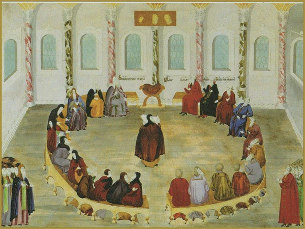 - политический кризис, предопределённый, с одной стороны, дезорганизацией системы государственного управления в годы опричнины[18], а с другой стороны — борьбой боярских группировок за влияние и общим стремлением боярства ограничить царскую власть, исключив возможность повторения опричнины;