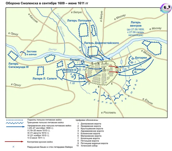 Под Смоленском поляки соединились с отрядами литовского гетмана Я.-К. Ходкевича. В августе 1617 года 8-тысячное войско двинулось к Москве. В октябре 1617 года на сторону противника без боя перешли Дорогобуж и Вязьма. Возникла угроза для стратегически важного пункта — Можайска. Царское правительство даже было вынуждено просить помощи у бежавших из Вязьмы казаков, простив им измену. Однако королевич Владислав остановился, потому что шляхтичи, не получавшие жалованья, стали разъезжаться. Это дало возможность русским воеводам подтянуть подкрепления и в конце ноября 1617 года отбить нападение на Можайск[233].