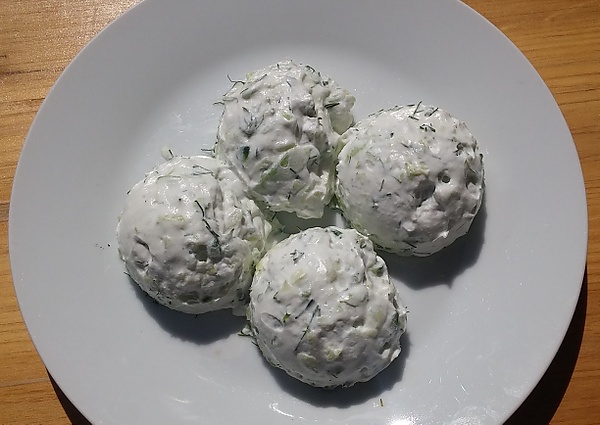 Салат готовят, добавляя отжатый йогурт к мелко нарезанным или натёртым огурцам. Добавляют мелко нарезанный или раздавленный чеснок (по вкусу), мелко нарезанный укроп, немного соли и масла, и хорошо перемешивают. Также можно добавить молотые грецкие орехи. Украсить можно веточкой свежего укропа.