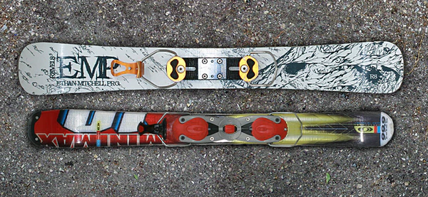 Сноублейды имеют слаборазвитую твинтип конструкцию с несимметричной геометрией расширяющейся к мыску. Для катания на сноублейдах используются стандартные горнолыжные ботинки, которые пристегиваются к предустановленным жестким (не отстегивающиеся) креплениям. 8-точечные крепления из пластика смещены от центра к пятке, самостоятельно настраиваются под размера ботинка от 35 до 45. Также некоторые модели были представлены и с автоматическими креплениями. В отличие от обычных горных лыж, для катания на сноублейдах нет необходимости в использовании палок.