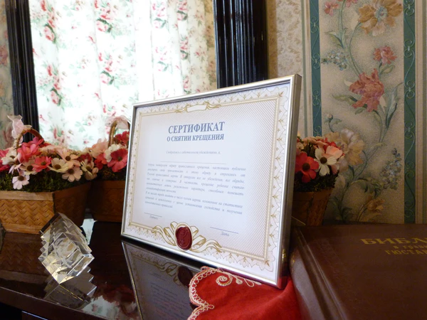 Например, российский сайт debaptism.ru продаёт сертификаты раскрещивания. Сертификат содержит следующий текст: