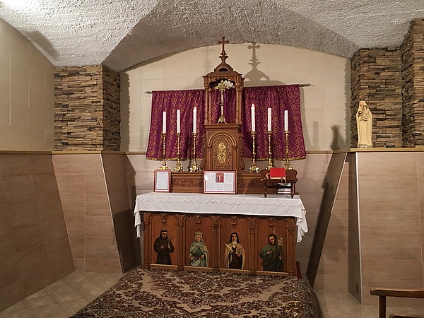 В Большой часовне, расположенной в крипте собора, служат тридентскую мессу по форме Латинского обряда и Божественную Литургию византийской традиции для членов Российской Католической Церкви византийского обряда. Деревянный алтарь, стоящий в северном конце, был привезён из США в 1990-х годах. До восстановления храма он использовался в качестве дарохранительницы, а в 1999-м был перенесён в крипту собора, где несколько лет не использовался. Алтарный камень помечен крестами, однако никаких надписей не имеет, поэтому определить, чьи мощи в него заложены, невозможно. На передней стенке алтаря изображены четверо святых: Франциск, Тереза Авильская, Елизавета Венгерская и Иосиф. Дверца дарохранительницы украшена символикой Святейшего Сердца Иисуса[23].