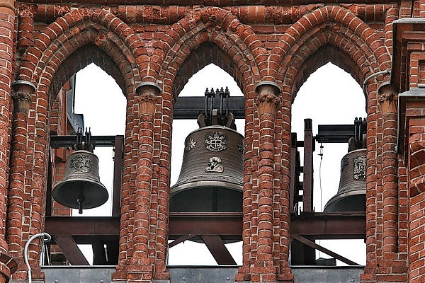 В левой боковой части фасада, прямо за стрельчатой аркадой, расположено пять колоколов, изготовленных на знаменитой польской фабрике Фельчинских в Перемышле и подаренных Тарновским епископом Виктором Скворцом. Самый большой из колоколов весит 900 кг и носит название «Фатимская Божья Матерь». Остальные, в порядке убывания, называются: «Иоанн Павел II», «Святой Фаддей» (в честь небесного покровителя архиепископа Тадеуша Кондрусевича), «Юбилей-2000» и «Святой Виктор» (в честь небесного покровителя епископа Скворца). Колокола приводятся в движение специальной электронной автоматикой, пульт управления которой находится в ризнице собора.
